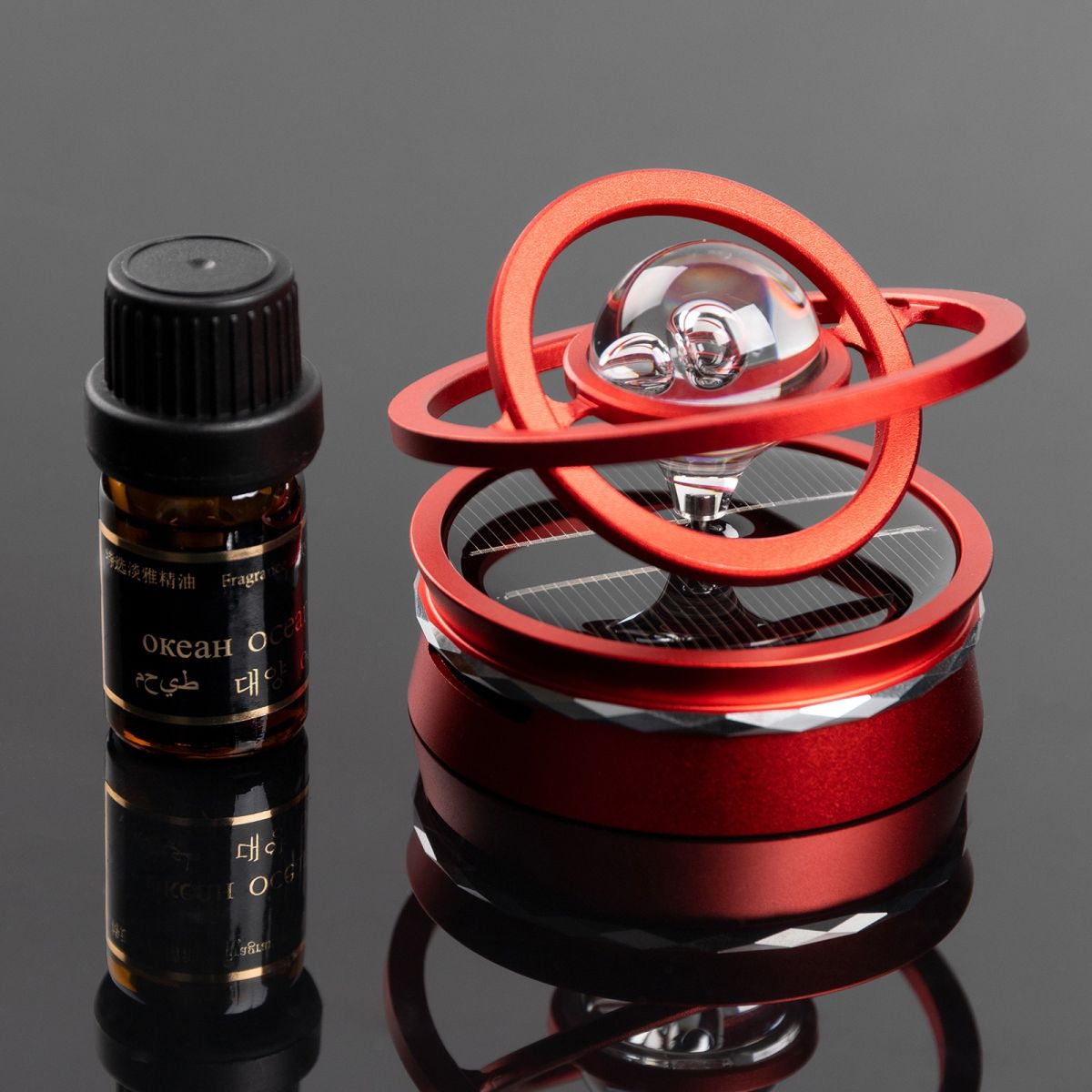 Аксессуар на панель с ароматизатором, гравитационные кольца, вращается от солнца, черный
