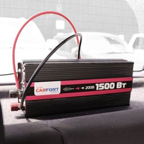 Инверторы напряжения Carfort выдают модифицированный синусоид или прямоугольный импульс (меандр), что позволяет подключать к бортовой сети автомобиля различные электроприборы, работающие на переменном токе 220В. Незаменим при выезде на природу и в дальних путешествиях.