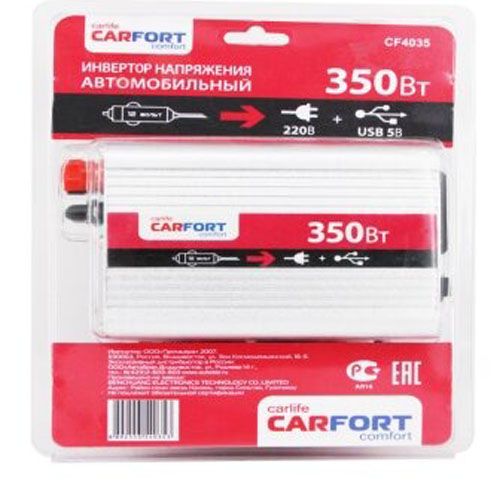 Читать все статьиИнвертор напряжения «CarFort» DC12v- AC220v. 350w