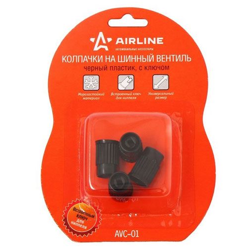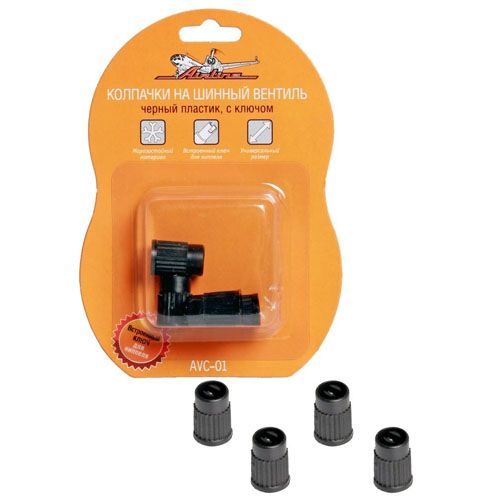 Читать все статьиКолпачки на шинный вентиль, с ключом, черные AIRLINE AVC-01