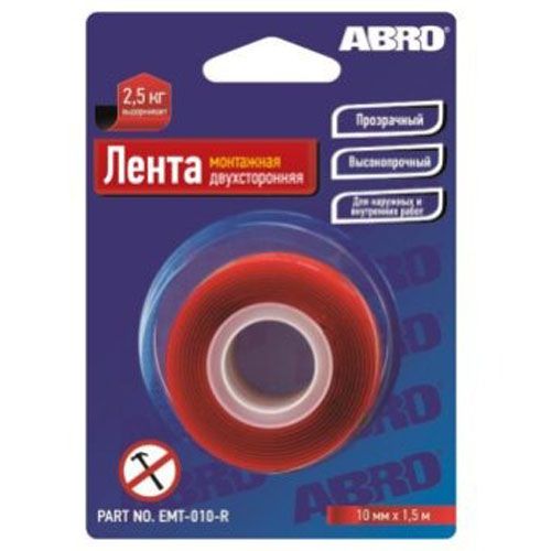 Читать все статьиЛента клейкая двухсторонняя ABRO монтажная 10мм-1,5м EMT010RE