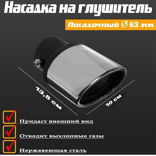 Читать все статьиНасадка на глушитель 13,5x 10 см, посадочный 63 мм
