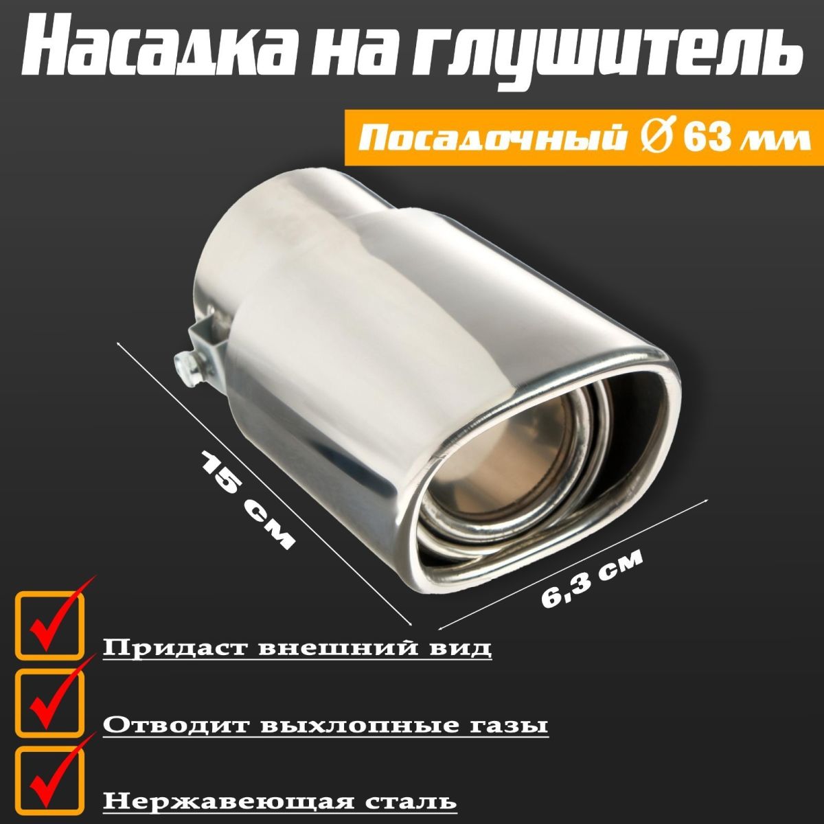 Читать все статьиНасадка на глушитель 150×63 мм, посадочный 63 мм